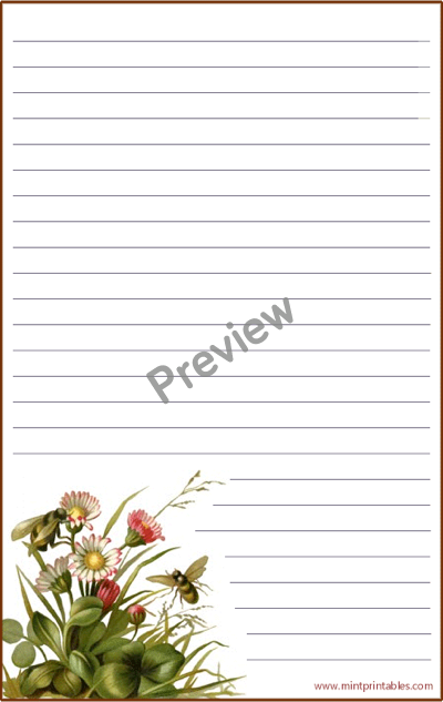 This writing pad has a beautiful Victorian style image of bumble bees gathering nectar from wild flowers and will make 2 pages of writing paper per printed page.